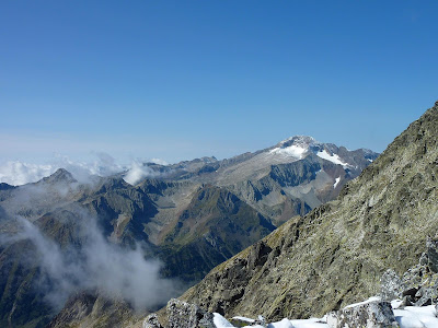 Hito Este del Perdiguero (3170m.), al fondo el Perdiguiero, ya queda menos.